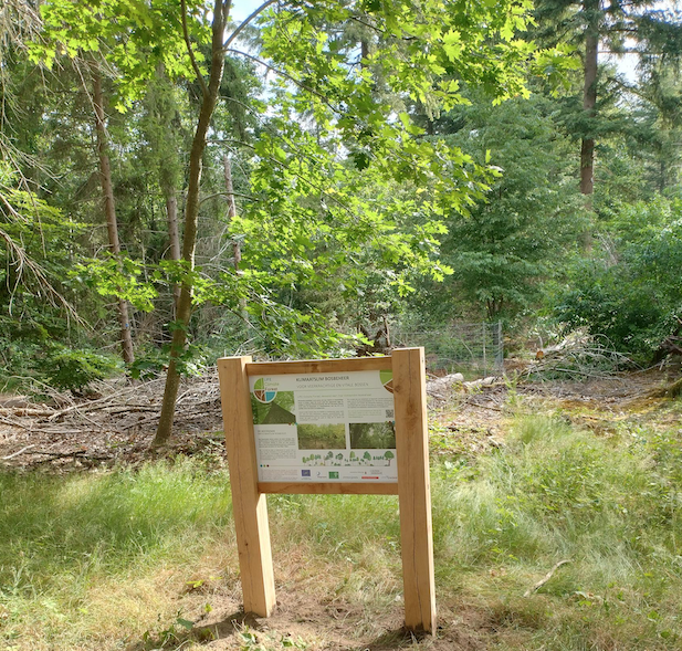 The demosite forest consists of plantings from the 1920s and 1930s and plantings from 1950-1960 and 1973-1980. Main tree species here were standby Scots and Corsican pine, American oak, Douglas fir, beech and Japanese larch. Here, spontaneous birch played an important role, while American oak also developed competitively in rejuvenation and through outgrowth of stobbes. About 7% of the area is occupied by more-demanding conifer species (Japanese larch and Douglas fir) and about 17.5% by American oak.