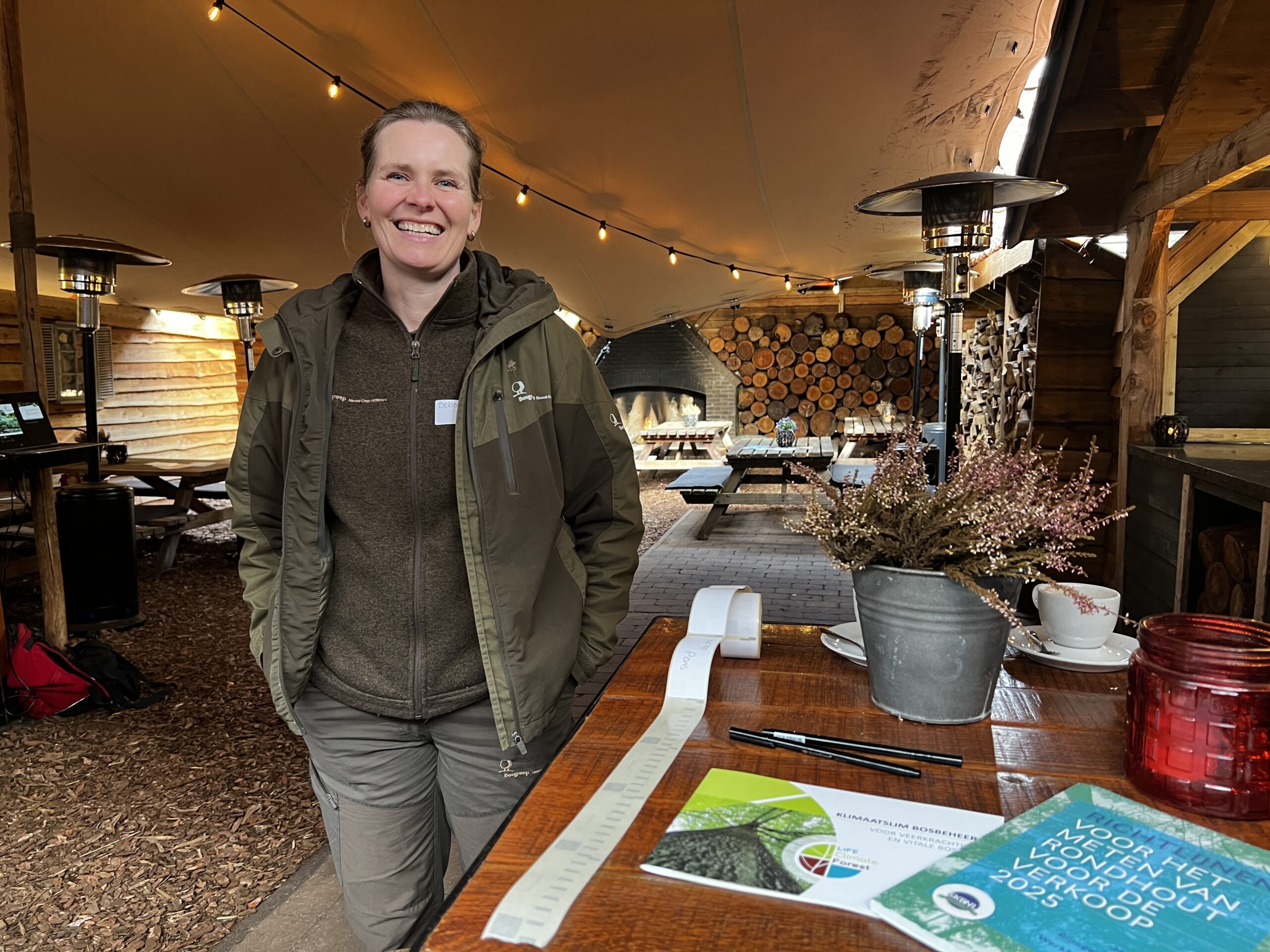 Na de uitgebreide, enorm enthousiaste rondleiding in het bos namen de aanwezigen nog afscheid van Debora Fiers als groepsmanager FSC/PEFC én als actief partner (Bosgroep Noord-Oost Nederland) van LIFE Climate Forest.