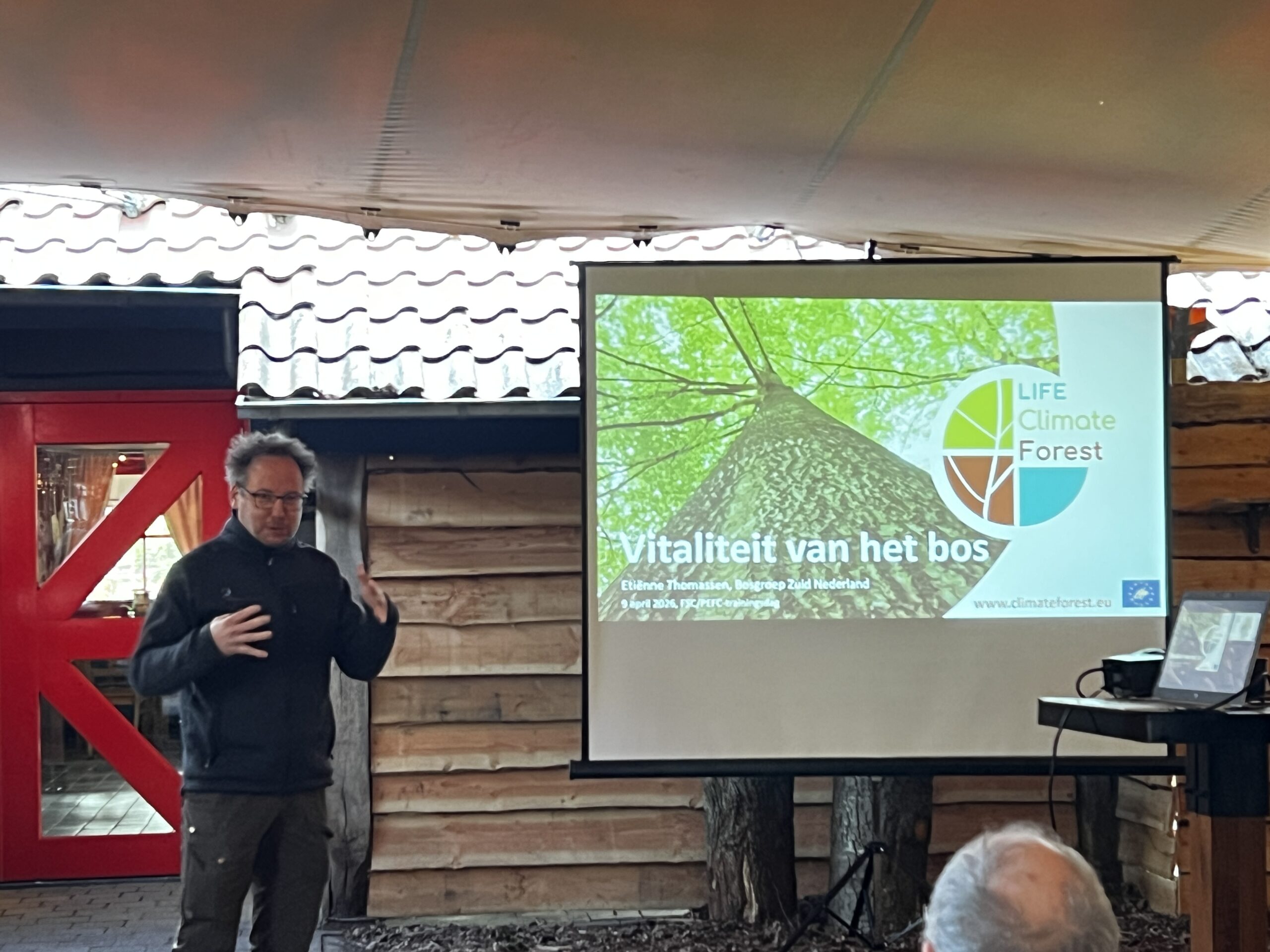 – In april verzorgde de Bosgroepen weer een trainingsdag voor de houders van de FSC- en PEFC-groepscertificaten. Tijdens het ochtendprogramma gaf Etiënne Thomassen (namens LIFE Climate Forest) een presentatie over vitale bossen en tijdens het middagdeel brachten de deelnemers een bezoek aan het demobos van Landgoed Pijnenburg.
